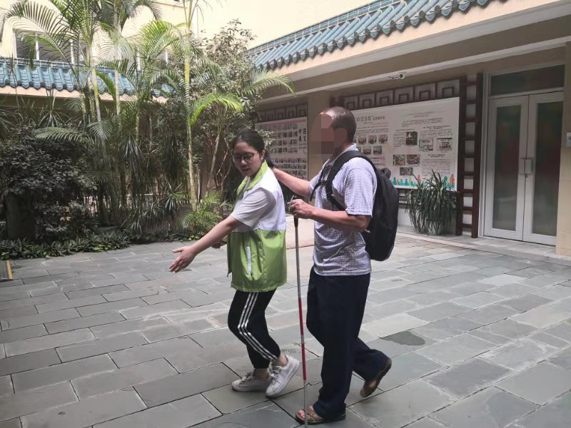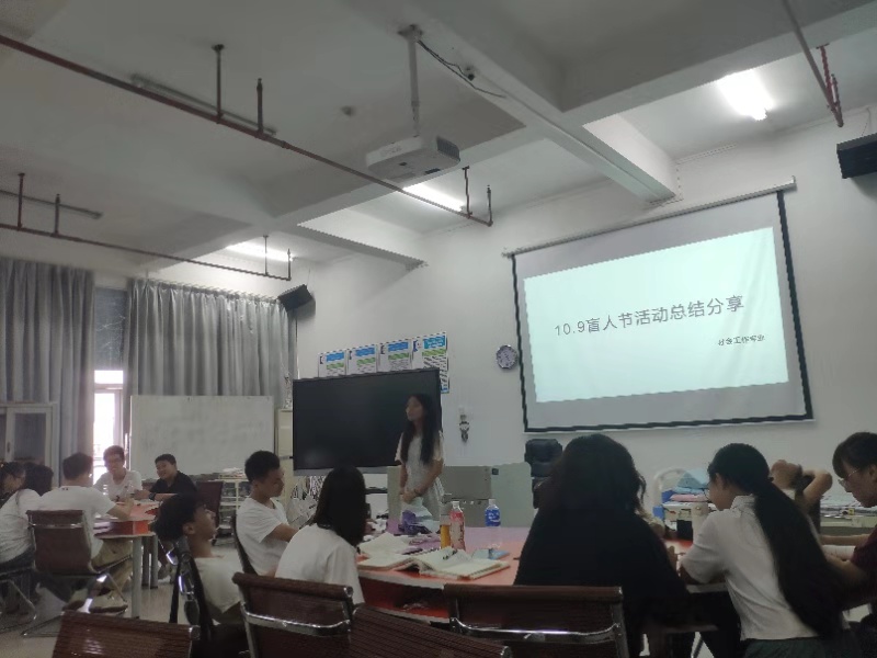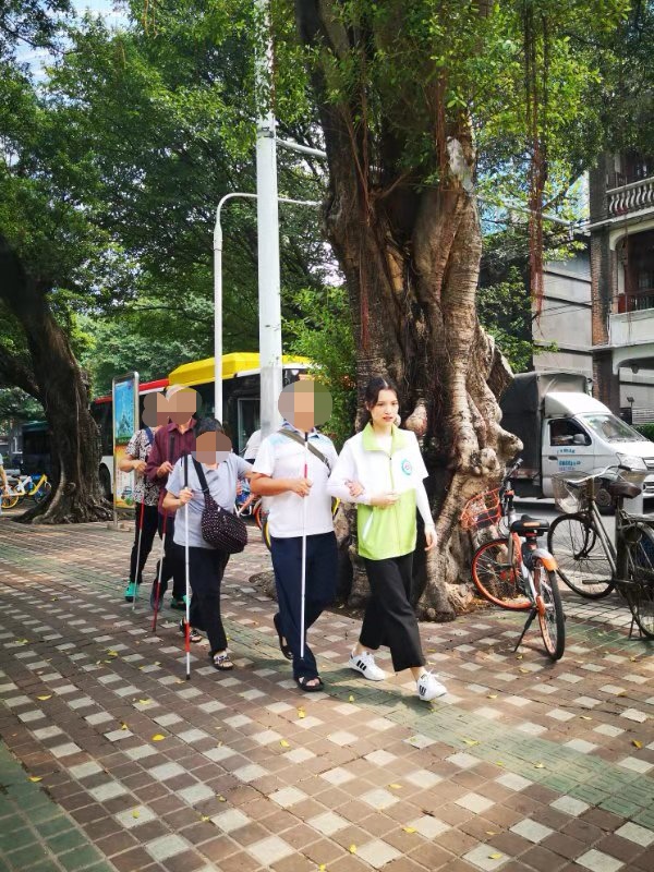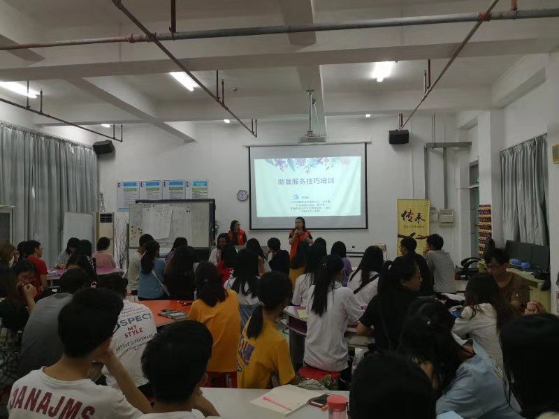 我校管理学院社会工作专业17级全体师生为参与活动的盲人提供了专业的志愿服务。继上一次国际盲人节志愿服务后,为了提升专业服务标准,特别邀请了广州市融爱社会服务中心创办人张倩昕理事长到校展了助盲培训。