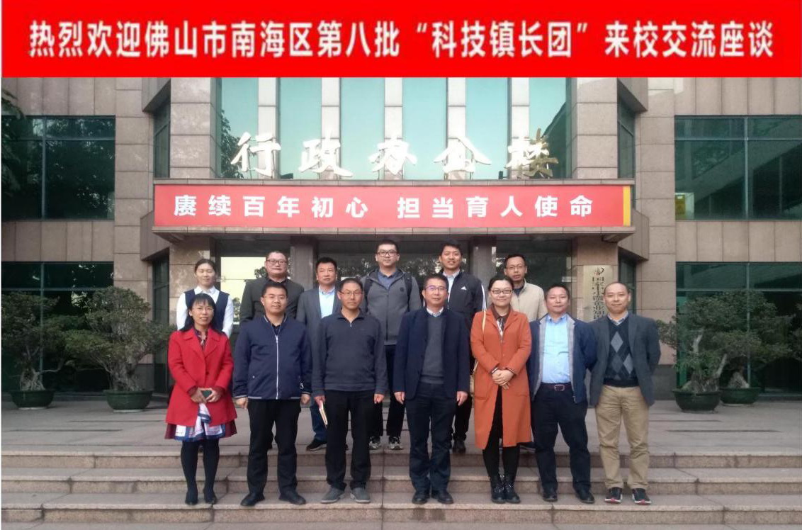 11月30日,南海区科学技术局副局长陈建宾等领导及南海区第八批“科技镇长团”成员一行共八人来我校南海校区开展工作交流。我校副校长邓毛程出席工作交流会。