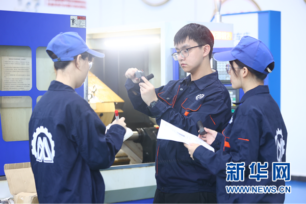 团队成员在两位指导老师的指导下,通过不断的反复试验加工,终于找到合适的加工角度。新华网发(受访单位供图)