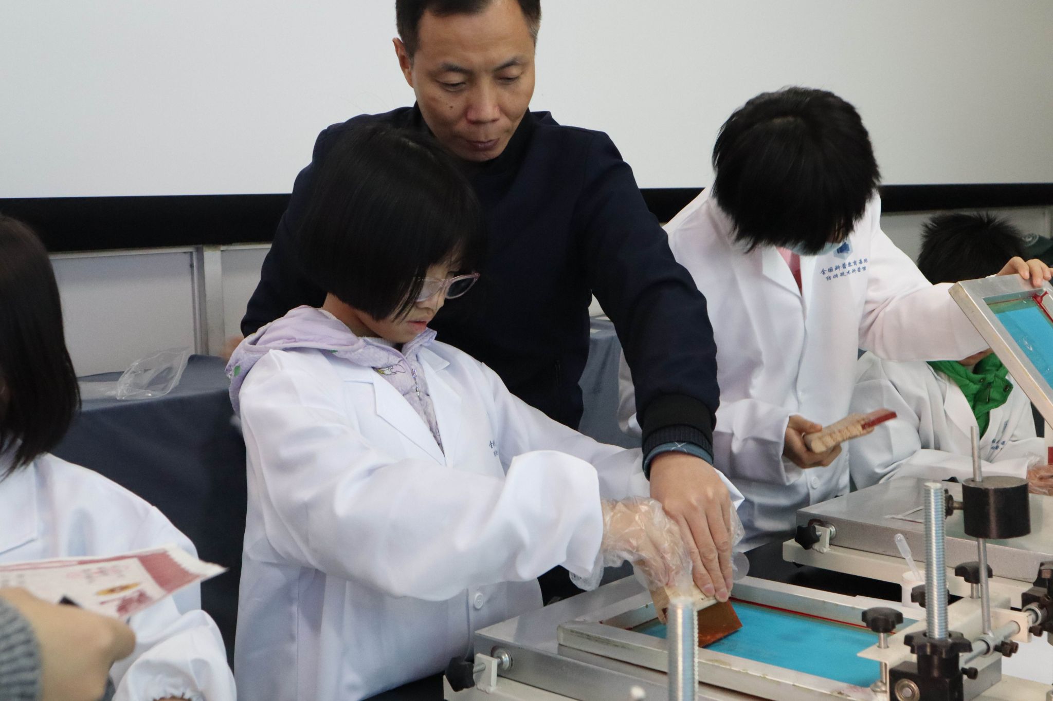 在老师的耐心指导下,孩子们还亲身体验了丝网印刷这一传统而神奇的工艺技术。他们亲手操作,在自己的研学证书上印上了广东轻工职业技术大学的标志性图案——“小鸽子”。这不仅是一份技能的实践,更是一份独特的记忆,为他们的研学之旅增添了一抹不可复制的色彩和印记。