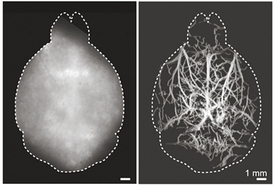 研究人员首先在模仿人体平均大脑组织特性的组织合成模型中测试了这项技术,证明他们可以在光学不透明的组织中获得最深达4毫米的显微分辨率图像。然后,他们在活小鼠身上测试了这项技术。他们给活小鼠静脉注射了荧光微滴,追踪这些流动的荧光微滴可以重建小鼠大脑深部微血管的高分辨率图。观察发现,借助DOLI技术可以完全无创地观察到脑微血管以及血流的速度和方向。