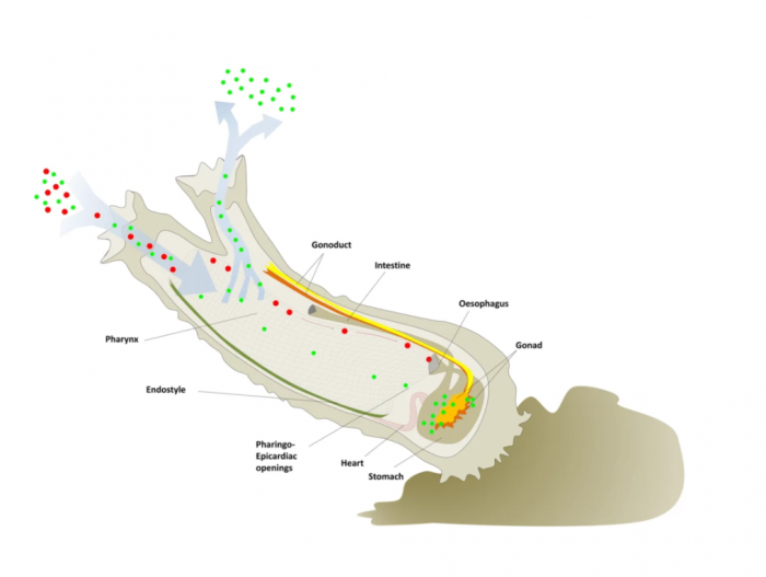 在实验室测试中,学名为Clavelina robusta(又名海鞘)的海洋生物被保存在含有聚苯乙烯纳米颗粒的水箱中,然后被 "收获 "并通过一个化学消化过程。这一过程分解了海鞘的组织,留下了微塑料和其他残留的有机化合物。然后,一种被称为非对称流场流分法的技术被用来将微塑料与这些化合物分开。
