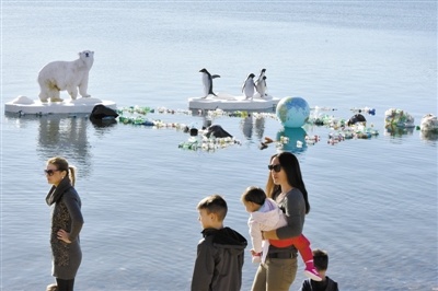 图为极地动物模型和塑料垃圾布景在克罗地亚海滨城市希贝尼克展出,旨在提醒人们关注全球变暖和塑料污染问题(资料照片)。 新华社发