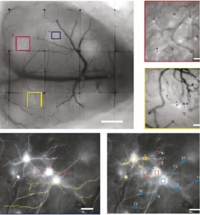 “从2013年开始,美国、欧盟、日本、韩国等都启动了‘脑计划’研究。这当中的研究方向有很多,我们专注的是揭示神经环路的活动规律。”研发团队成员、清华大学自动化系副研究员范静涛向记者讲解道:“我们可以把神经元理解为一个个路由器,它们不断在收发信号,构成了人的思想、意识等。神经元之间先连接成小的神经环路,在此基础上再形成全脑神经网络。要直接看到神经环路里神经元是如何工作的,就是我们要突破的难题。”