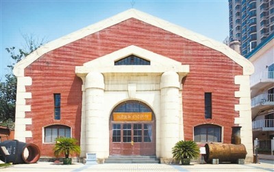 来到水厂旧址,首先映入眼帘的是中西合璧的办公旧址大门。大门面阔三间,中间为拱形设计,门脸用红青砖镶砌而成,具有典型的西洋风格。细看大门顶部浮雕,上方有荷叶、莲花、香蒲棒、慈姑花等图案,下面是磐石和流水,象征寿山和福海。拱心石部分浮雕由花心瓣和莲花纹组成,名为“清净吉祥”,表现水的洁净无瑕。大门两侧上方有“双狮护财”浮雕。