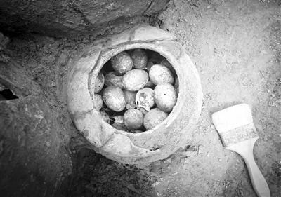 “陶罐里的鸡蛋与现在的草鸡蛋差不多大,但是,蛋清、蛋黄已经没有了。鸡蛋历经2500年,应该基本被分解,而蛋壳是钙质,性质稳定,因此能够保存下来。所以,这罐鸡蛋有可能只留下一罐鸡蛋壳。”相关考古专家分析说。