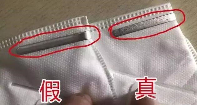 假口罩按压孔比较粗,同时比较浅,并且边缘很薄,而真口罩按压孔更小,更深,边缘也比较厚,可以明显的看出差别。