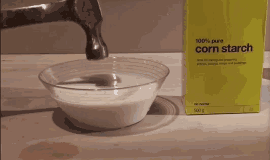 日常生活中,我们也可以轻易地制作出一种剪切增稠流体,比如用玉米淀粉和水混合之后形成的水淀粉。