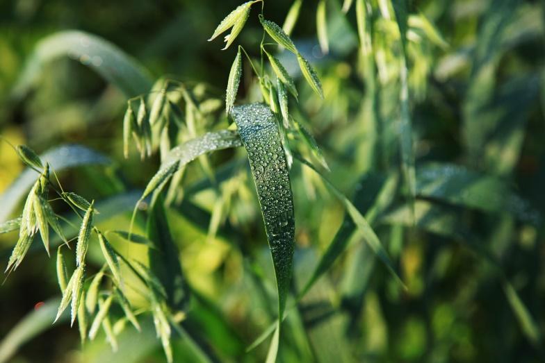 田野里的露水也是空气中的水汽碰到较冷的地面或近地面的物体而凝结的小水珠。在温暖季节的清晨,人们更是可以在路边的草,树叶及农作物上经常可以看到的露珠。